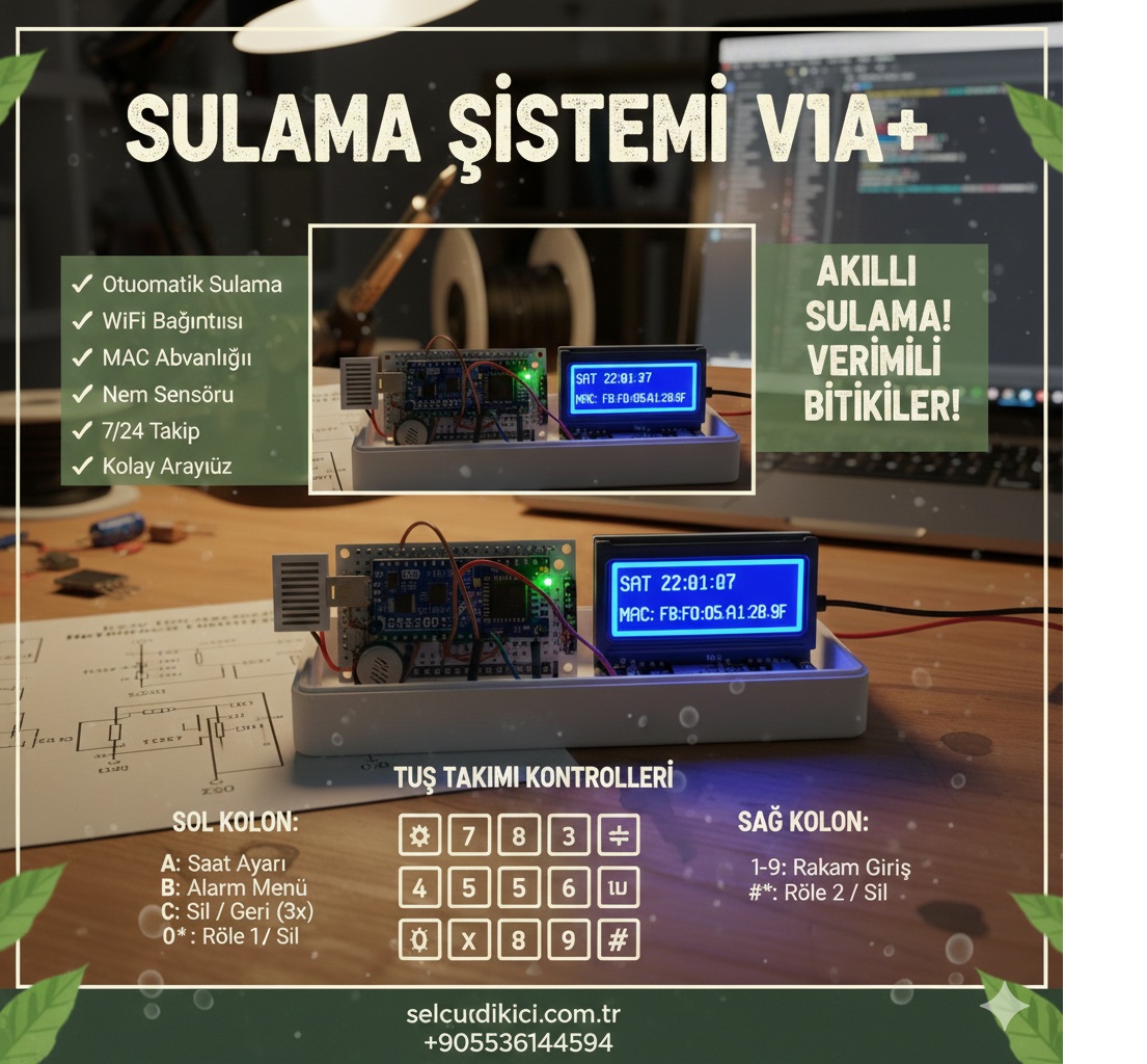HAFTANIN 7 GÜNÜ 10 FARKLI PROGRAM 2 AYRI RÖLE ÇIKIŞI SICAKTA YAKMASIN BİTKİLERİ DİYE PROGRAM KUR